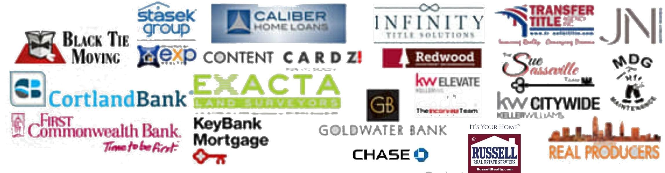 Content Cardz, Sue Sasseville KW Team, Transfer Title Agency, Goldwater Bank, First Commonwealth Bank, Cleveland Real Producers, MDG Maintenance, Feagan Law